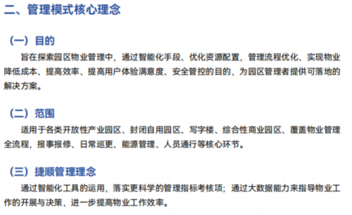 這套管理模式以 “服務(wù)提質(zhì)、經(jīng)營增收” 為宗旨,覆蓋園區(qū)資產(chǎn)增值、物業(yè)降本提效、客戶資產(chǎn)運(yùn)營三大核心場景的管理模式創(chuàng)新: