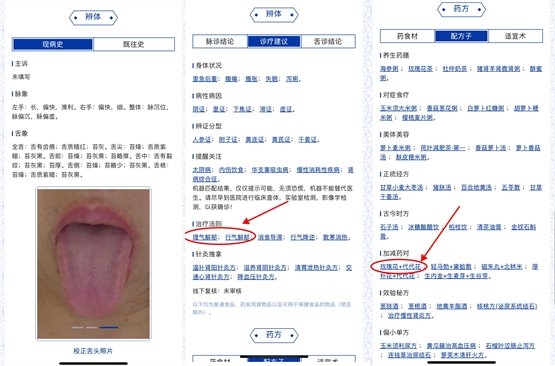 (張女士體驗(yàn)ChatiSS后系統(tǒng)為其推薦“玫瑰花+代代花”加減藥對(duì))