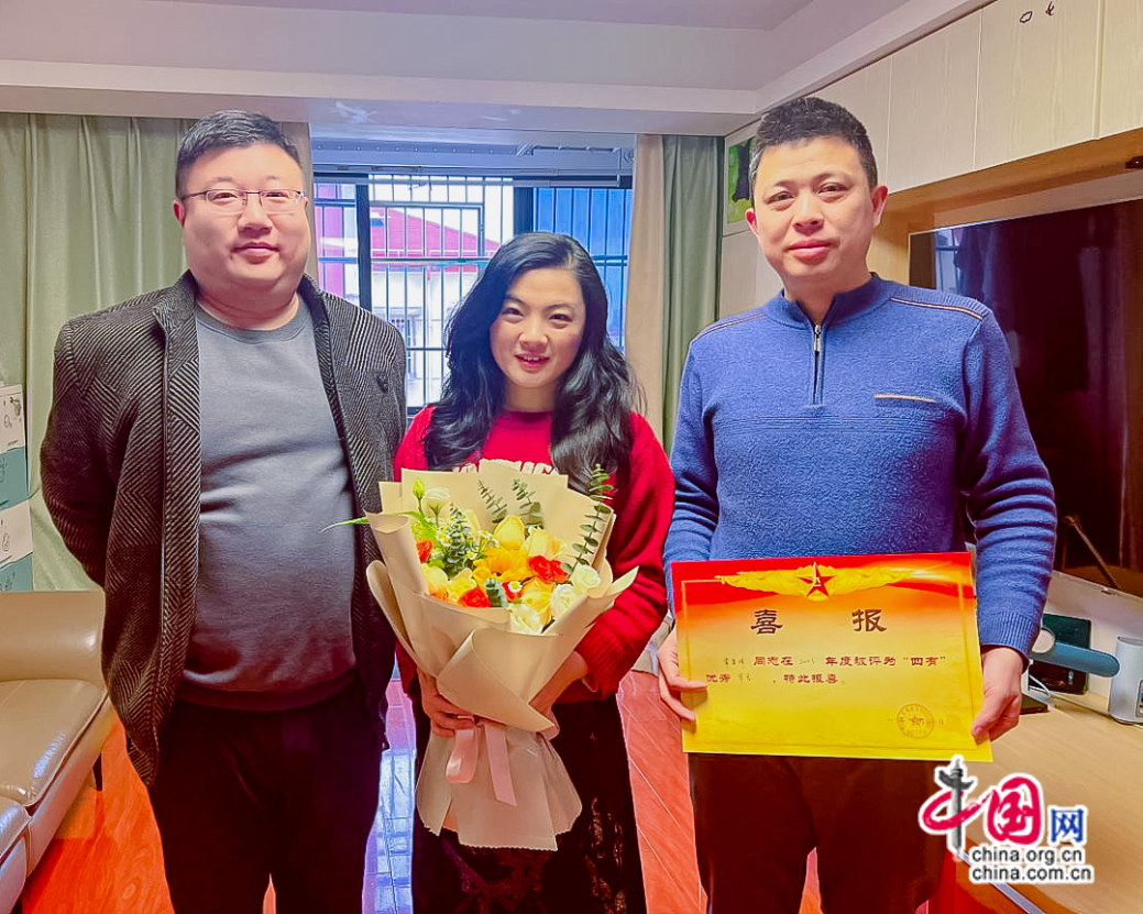 榮譽(yù)背后,離不開軍人家屬理解和支持。看著丈夫榮立“四有”優(yōu)秀軍官喜報(bào),妻子王青感慨萬(wàn)千。部隊(duì)任務(wù)繁重,夫妻二人聚少離多,孩子教育、家庭重?fù)?dān)、自身教研工作壓力,大多都落在這位軍嫂身上。但她毫無(wú)怨言,一直默默照顧著小家。在了解到目前一家三口家庭狀況和軍人孩子吃飯情況后,街道相關(guān)負(fù)責(zé)同志叮囑退役軍人服務(wù)站工作人員,要加強(qiáng)對(duì)現(xiàn)役軍人軍屬關(guān)心照顧,聯(lián)合社區(qū)食堂及時(shí)解決困難,讓軍屬切實(shí)感受到社區(qū)關(guān)懷。